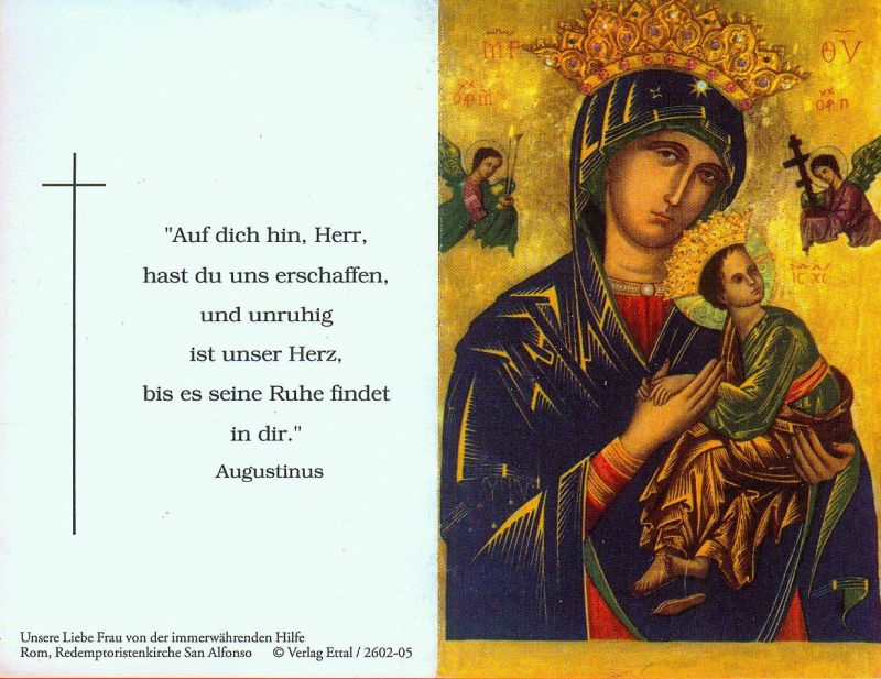 | Augustinerin; Ordenseintritt: 21.1.1947; Einkleidung: 8.9.1947; Zeitl. Profess: 11.9.1949; Eiwge Profess: 3.5.1954; Eisernes Ordensjubiläum: 21.4.2012 |