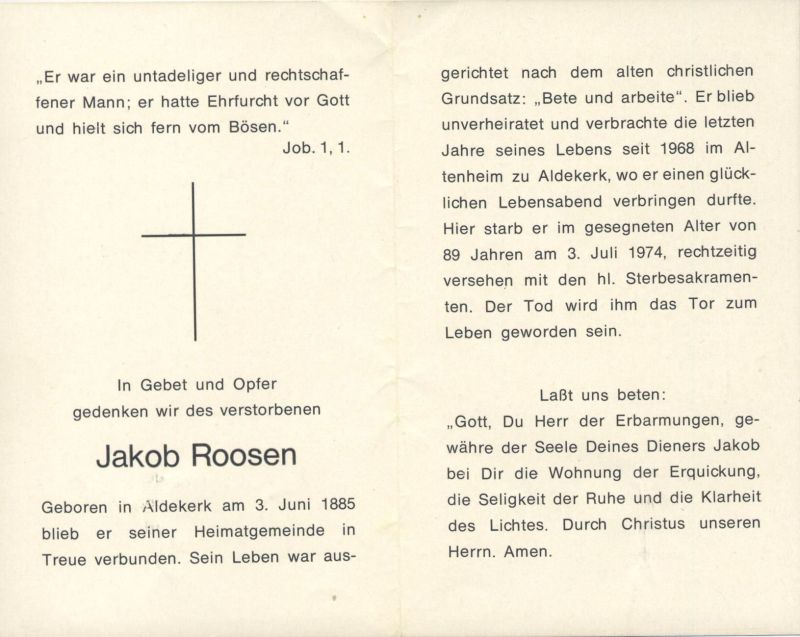 | Wohnort: Aldekerk; seit 1968 im dortigen Altenheim; unverheiratet |