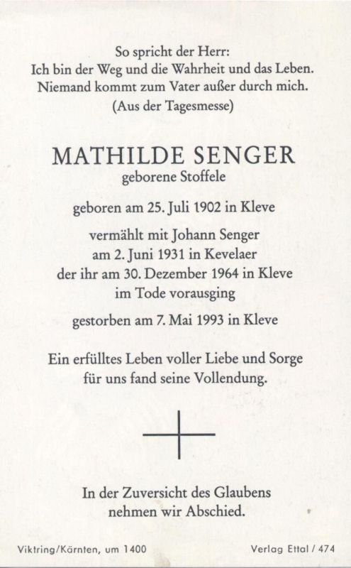| ∞ in Kevelaer 2.6.1931 Johann Senger |