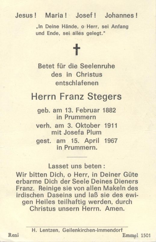 | ∞ 3.10.1911 Josefa Plum; Druck in Geilenkirchen-Immendorf |
