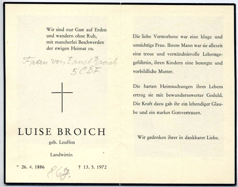 Broich, geb. Leuffen | Vorname: |
