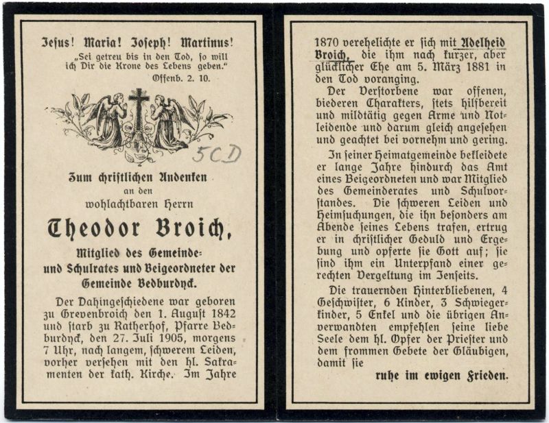 Mitgl. Gemeinderat u. Schulvorstand; Beigeordneter der Gemeinde Bedburdyck; ∞ 1870 Adelheid Broich, † 5.3.1881; 6 überlebende Kinder |