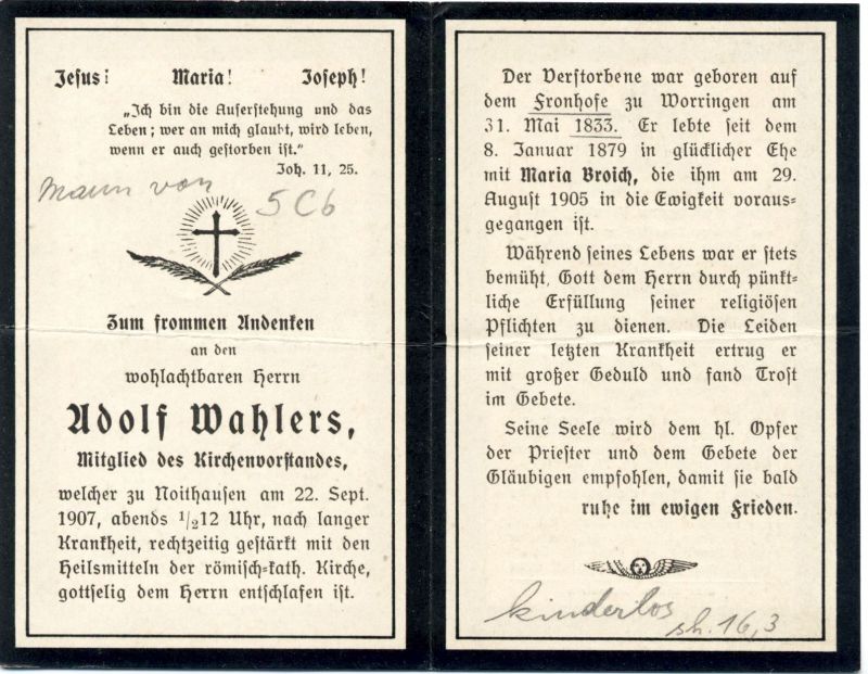 ∞ 8.1.1879 Maria Broich, † 29.8.1905; Mitgl. Kirchenvorstand |