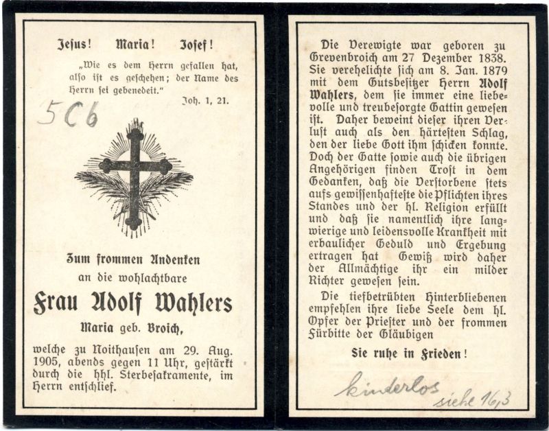 ∞ 8.1.1879 Gutsbesitzer Adolf Wahlers; langwierige Krankheit; kinderlos |
