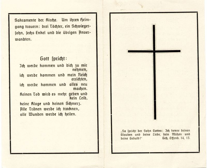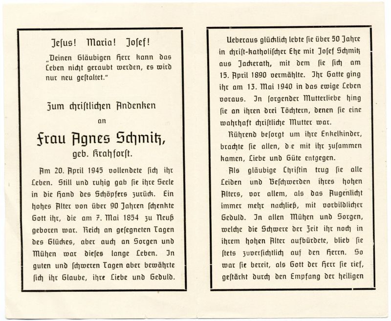 ∞ 15.4.1890 Josef Schmitz aus Jackerath, † 13.5.1940; 3 Töchter |