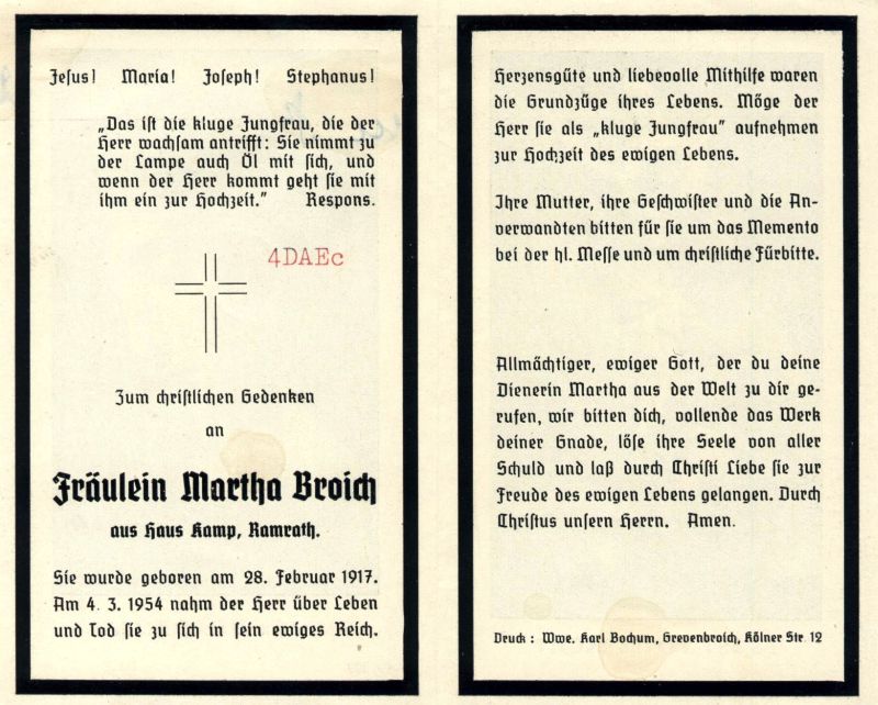 Fräulein; Elternhaus u. Wohnort: Haus Kamp in Ramrath |