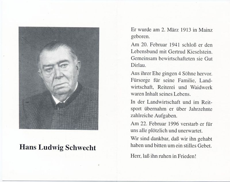 ∞ 20.2.1941 Gertrud Kieselstein; bewirtschafteten gemeinsam Gut Dirlau, Vettweiß; 4 Söhne; liebte Reitsport u. Jagd |