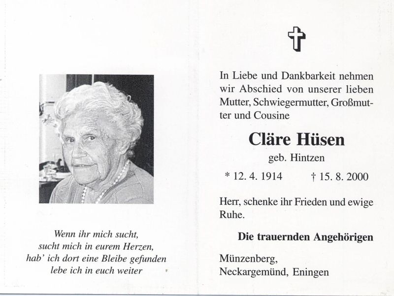 Wohnorte der Angehörigen: Münzenberg, Neckargemünd, Eningen |