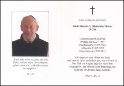Zisterzienser; Altabt; Profess 2.7.1957; Studium u.a. in Knechtsteden; Priesterweihe 15.7.1965; 1971-1992 Prior des Klosters Langwaden in Grevenbroich und baute den vertriebenen Konvent des Klosters Osek in Norböhmen wieder auf; Abtweihe 15.7.1990 (Abt dedr Zisterzienserabtei Osek); wegen Krebserkrankung 2008 Übersiedlung nach Goppeln |