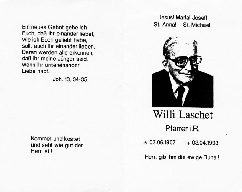 Pfarrer i. R.; (Priesterweihe 16.2.1934 Köln; 1947 Kaplan in Buir; 1954 Pfarrer in St. Anna zu Thier) |