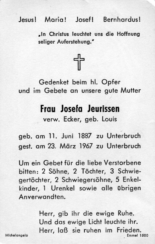 Jeurissen, geb. Louis, verw. Ecker | | Vorname: |