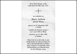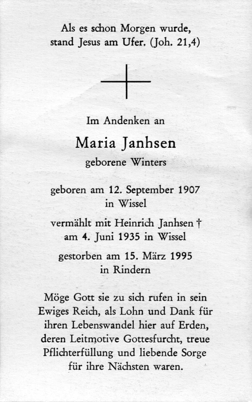 | ∞ Heinrich Janhsen, †4.6.1935 in Wissel |