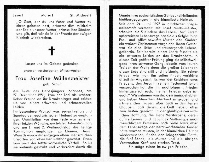 OO 24.6.1927 Josef Müllenmeister; 5 K.; 1 J. schweres Leiden u. Krankenlager (Buir) |