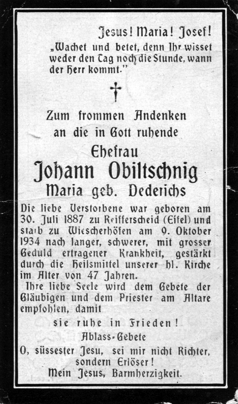 Obiltschnig, geb. Dederichs | | Vorname: |