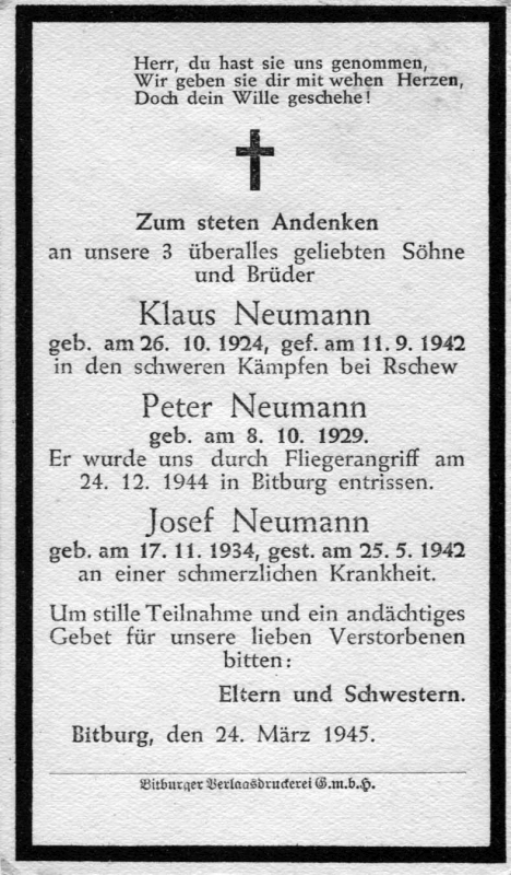 | Wohnort Bitburg; schmerzliche Krankheit |