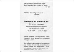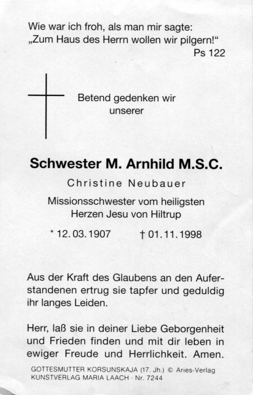 M. Arnhild MSC, Sr., geb. Neubauer | | Vorname: |