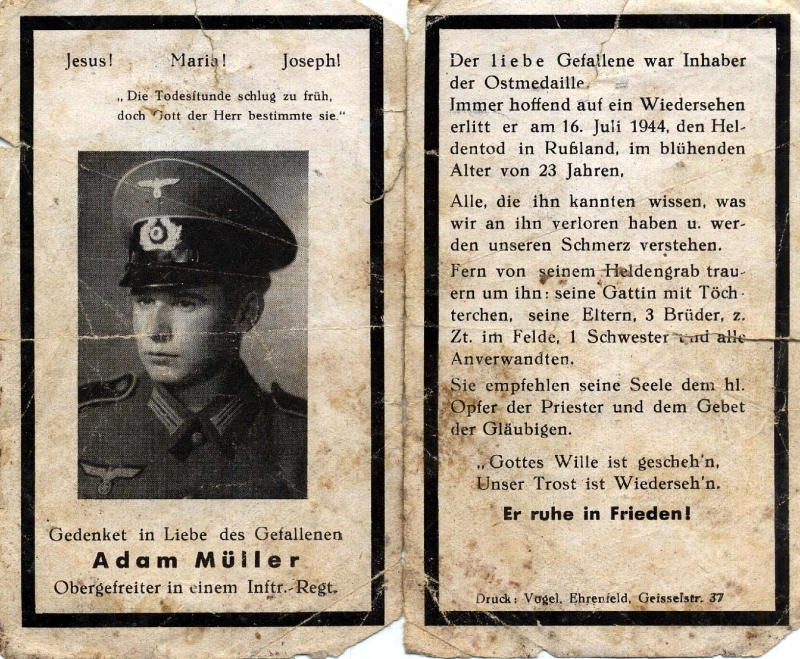 | Gefallener 2. Weltkrieg; 23 J.; verh., 2 Töchter; Druck in Köln-Ehrenfeld |
