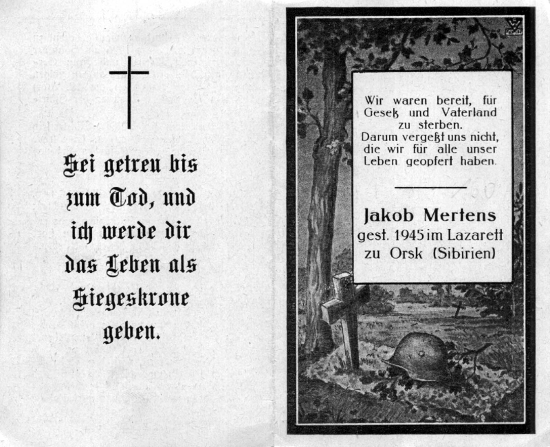 | Gefallener 2. Weltkrieg; Eltern: Josef Mertens u. Gertrud geb. Müller; gestorben an Folgen einer schweren Krankheit |