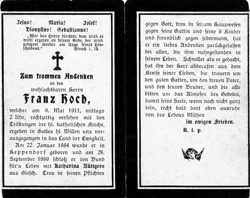 OO 28.9.1889 Katharina Rüttgers aus Glesch; 5 K. |