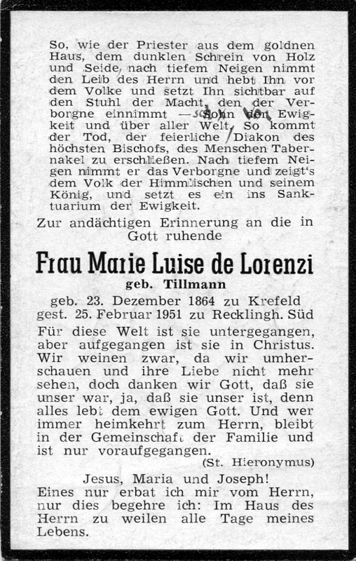 Lorenzi, de, geb. Tillmann | Vorname: |