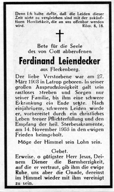 Leiendecker, geb. Fleckenberg | Vorname: |