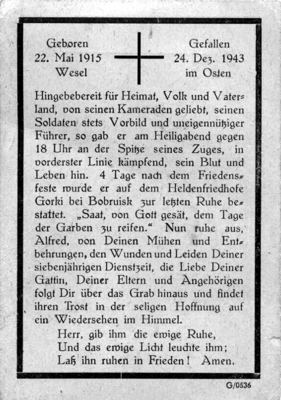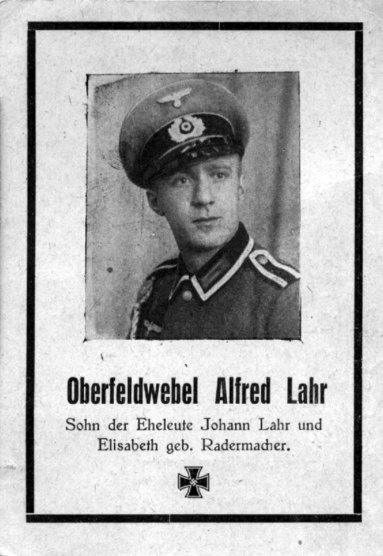 Gefallener 2. Weltkrieg; Eltern: Johann Lahr u. Elisabeth geb. Radermacher; Heldenfriedhof Gorki b. Bobruisk |