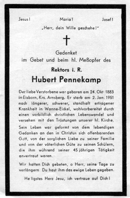 Längere, schwere Krankheit; Rektor i. R.; 45 J. Dienst |