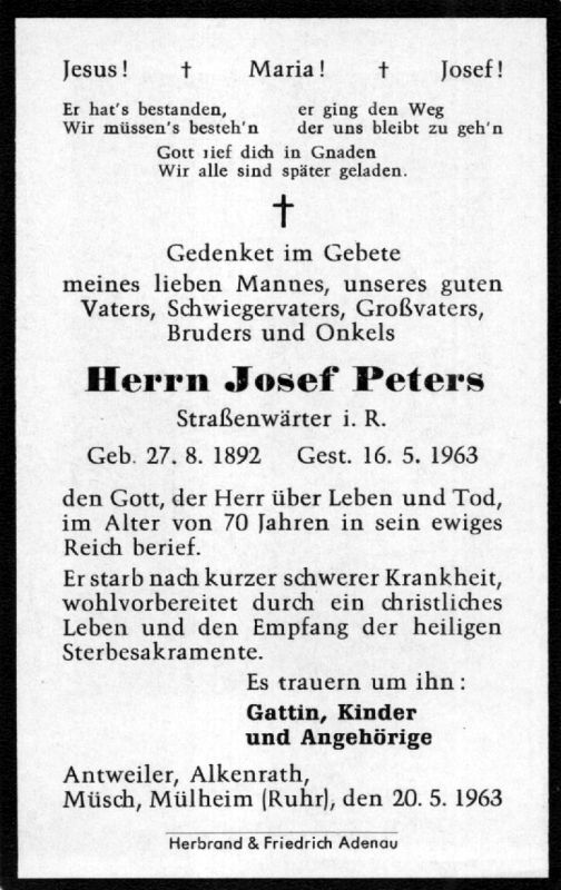 Straßenwärter i. R.; vereh., Kinder; Wohnort: Antweiler; Druck in Adenau |