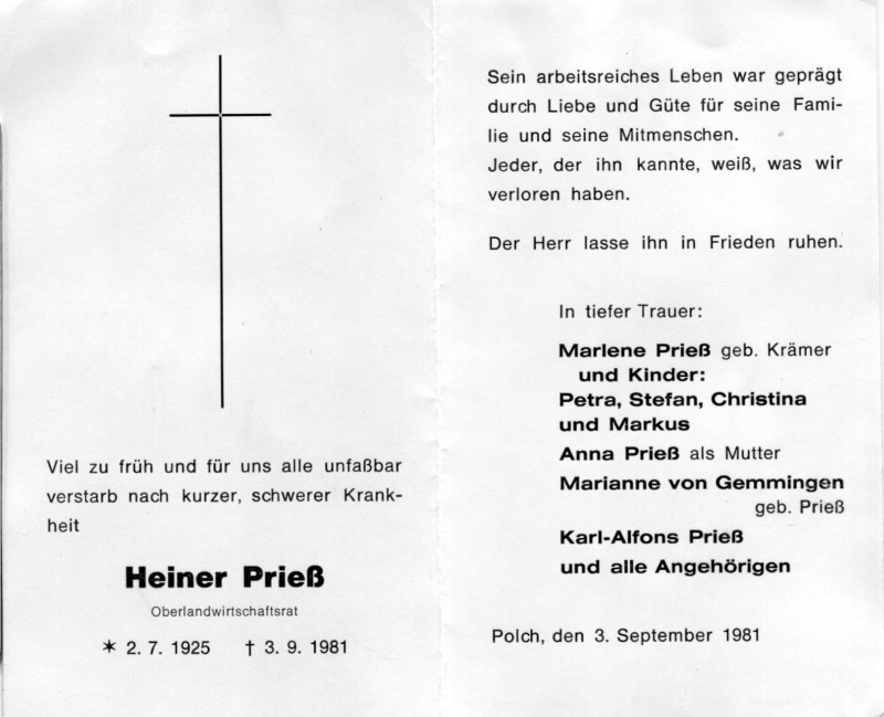 Oberlandwirtschaftsrat; ∞ Marlene Krämer; Kinder: Petra, Stefan, Christina, Markus; Wohnort: Polch |