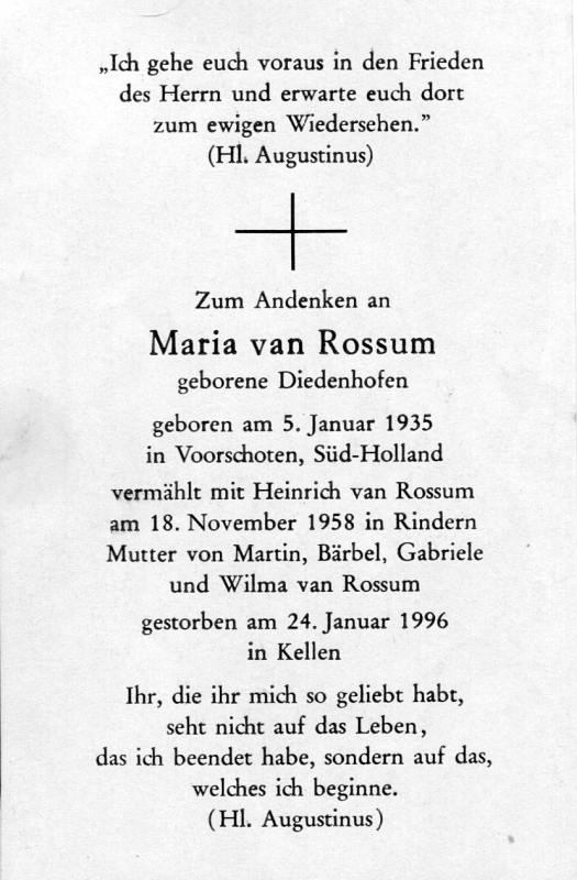 ∞ 18.11.1958 Rindern Heinrich van Rossum; 4 K.: Martin, Bärbel, Gabriele Wilma |