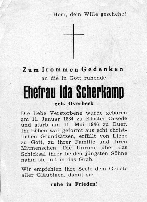 | Un ruhe über das Schicksal ihrer beiden Söhne im 2. Weltkrieg nahm sie mit ins Grab |