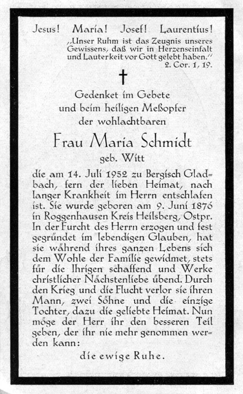 Roggenhausen, Kr. Heilsberg, Ostpreußen | | Geburtsdatum: |