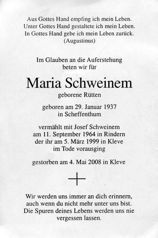 | ∞ 11.9.1964 Josef Schweinem in Rindern, † 5.3.1999 in Kleve |