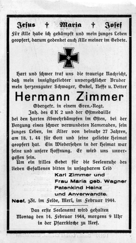 Gefallener 2. Weltkrieg; Wohnort: Neef |