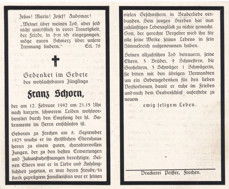 3 Brüder, 9 Schwestern; Druck in Frechen