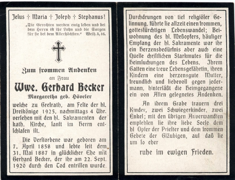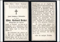 | ∞ 31.5.1887 Gerhard Becvker, † 22.9.1920; 3 überlebende K., 1 Sohn im 1. Weltkrieg gefallen |