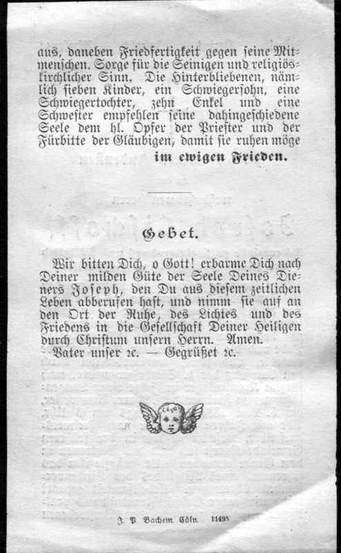 Ackerwirt zu Freimersdorf, Mitgl. Kirchenvorstand zu Brauweiler; ∞ Sophia Baumeister, † 15.3.1880; vor 8 J. siedelter er nach von Kaarst nach Freimersdorf über; 7 überlebende Kinder |