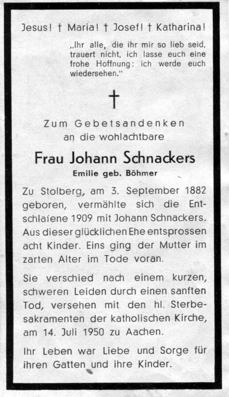 ∞ 1909 Johann Schnackers; 8 K., davon 1 früh † |