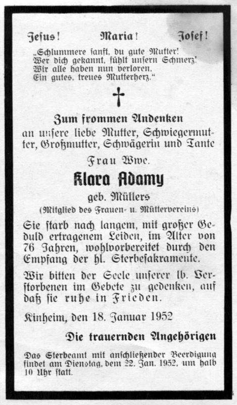 76 J.; mitgl. Frauen- u. Mütterverein; Wohnort: Kinheim |