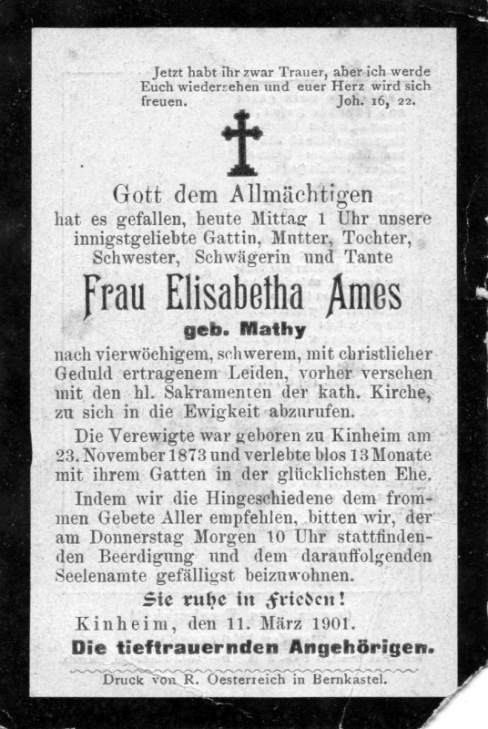 Wohnort: Kinheim/Mosel; seit 13 Monaten verheiratet; Druck in Bernkastel |