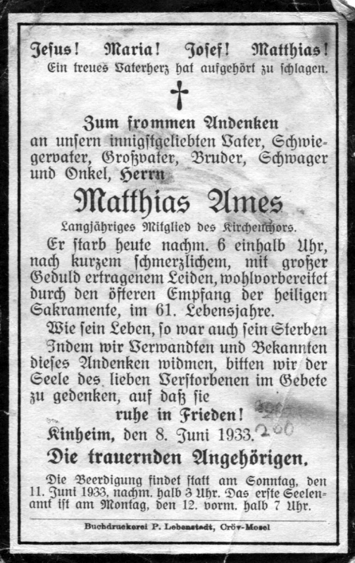 61 J.; Wohnort: Kinheim/Mosel; Langj. Mitgl Kirchenchor; verh., Kinder |