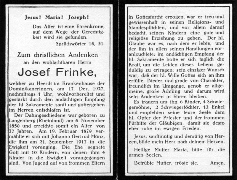 ∞ 19.2.1879 Johann Gertrud Münz, † 21.9.1917; 10 K., davon 4 †; |
