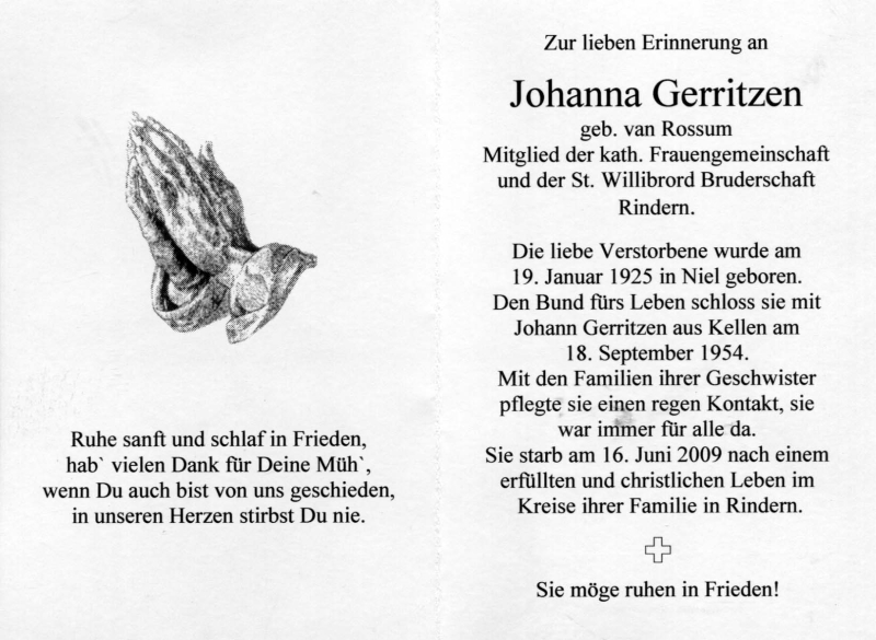 ∞ 18.9.1954 Johann Gerritzen aus Kellen |
