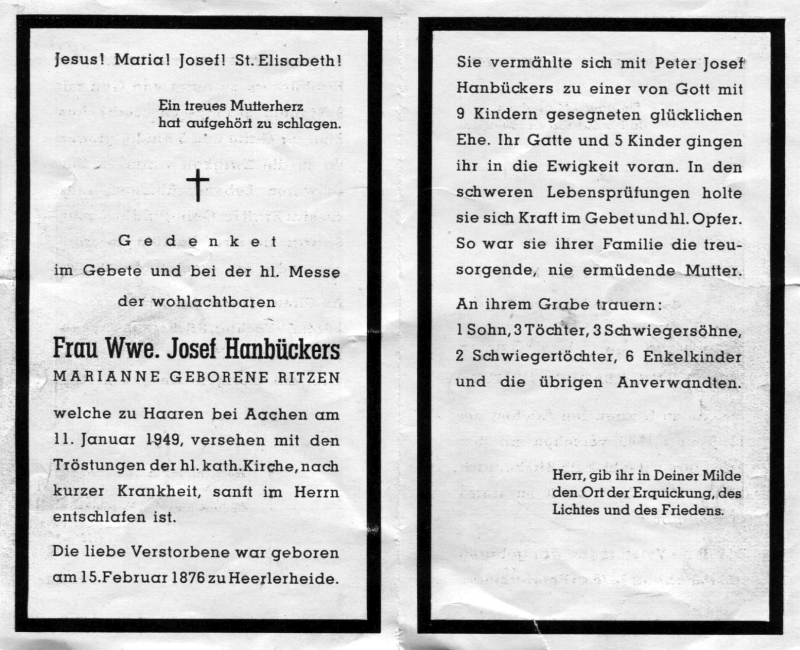 ∞ Peter Josef Hanbückedrs, †; 9 K., davon 5 †; |