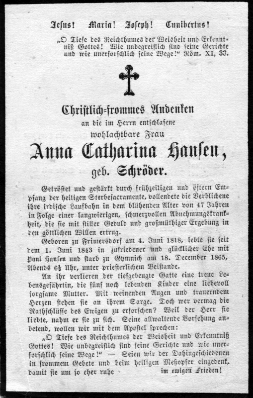 ∞ 1.6.1843 Paul Hansen; Abnehmungskrankheit |
