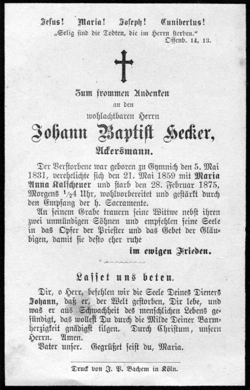 Ackersmann; ∞ 21.5.1859 Maria Anna Kalscheuer; 2 überlebende Söhne |