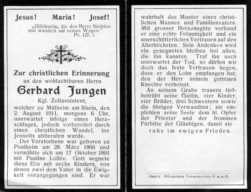Kgl. Zollassistent; ∞ 17.10.1891 Pauline Lollée; 6 K., davon 2 †; |