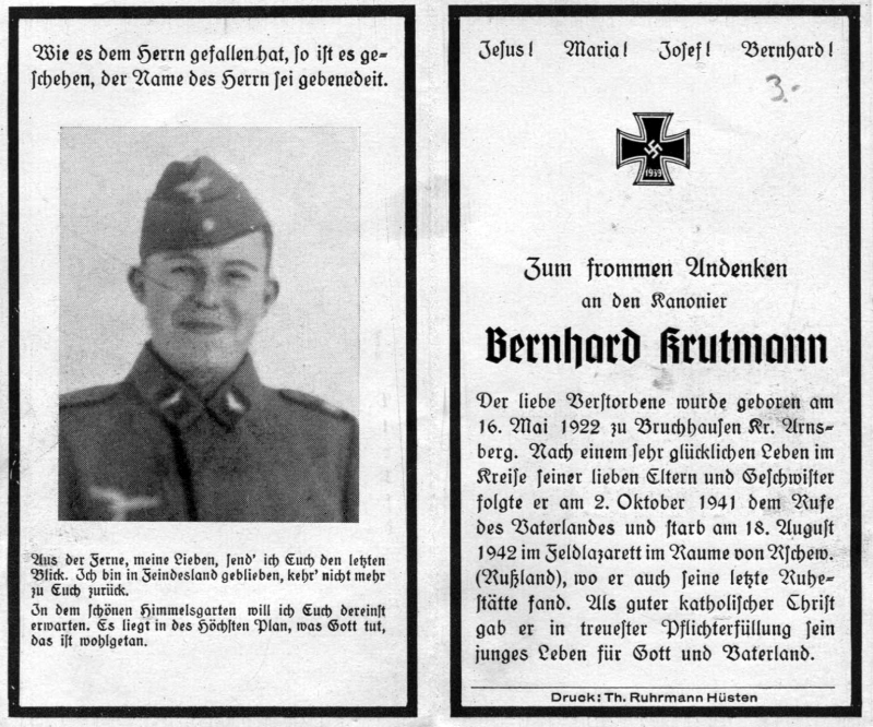 Gefallener 2. Weltkrieg; 2.10.1941 Einberufung; Druck in Hüsten |
