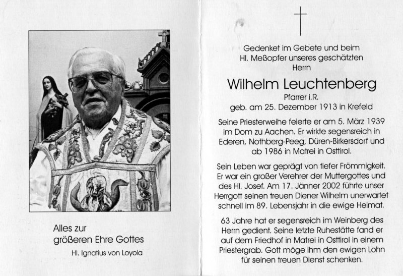 Priesterweihe Aachen 5.3.1939; wirkte in Ederen, Nothberg-Peeg, Düren-Birkesdorf u. an 1986 in Matrei in Osttirol; Pfarrer i. R. |