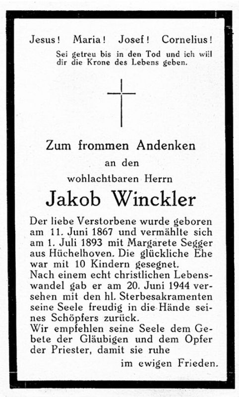 ∞ 1.7.1893 Margarete Segger aus Hüchelhoven; 10 K. (Geyen) |